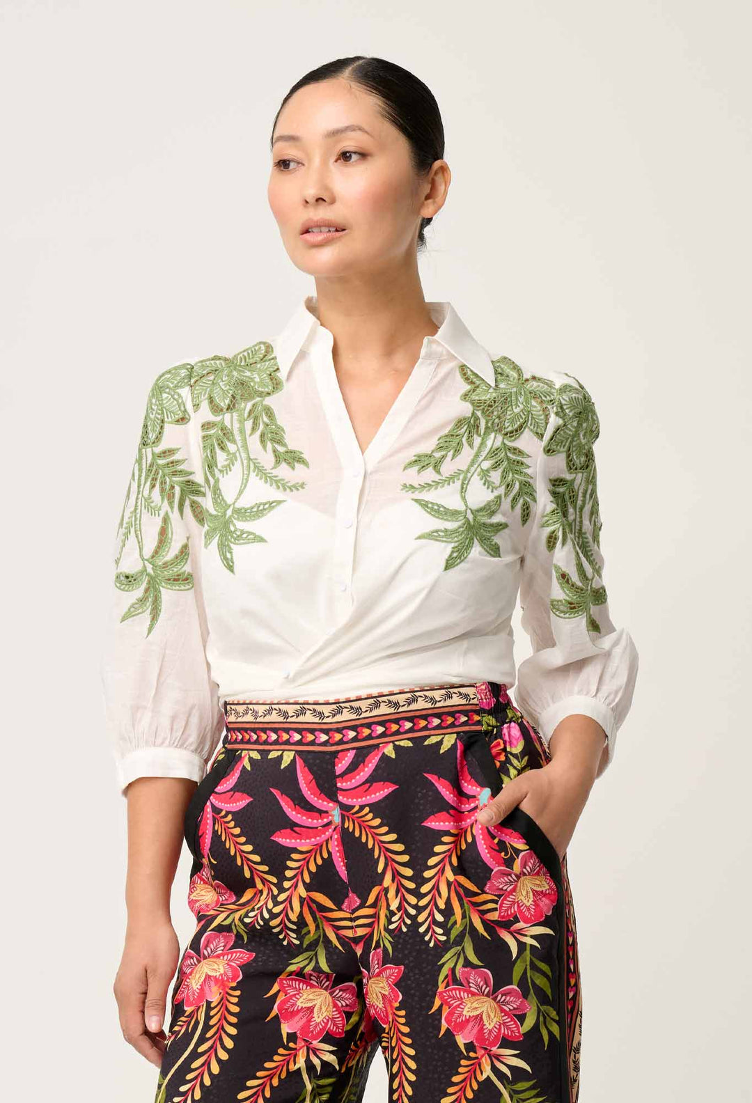 PETITE Callisto Cotton Embroidered Shirt in Ivory