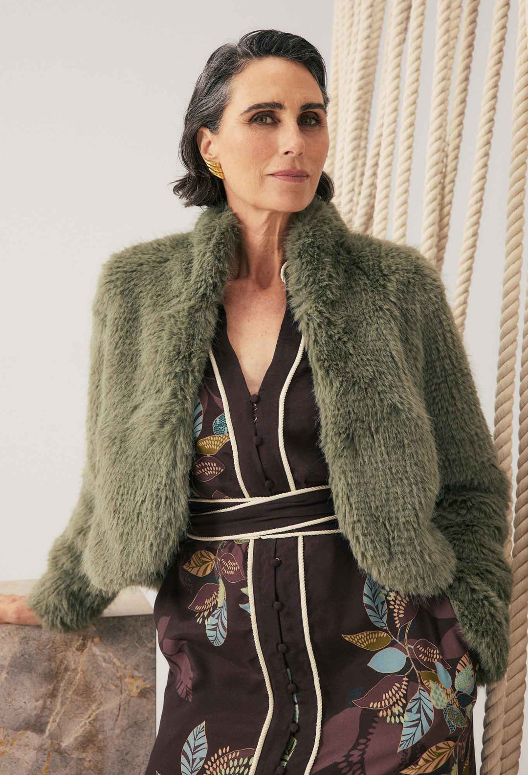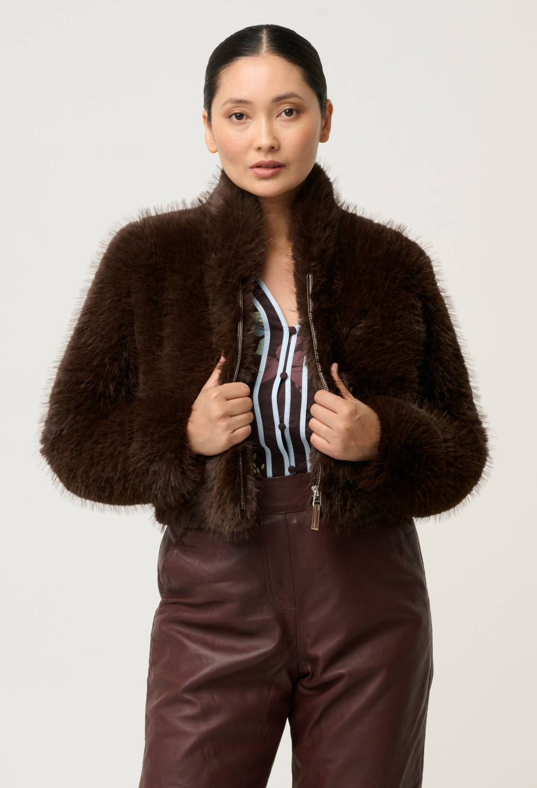 UNDER 5'4 Dawn Faux Fur Cropped Jacket in Walnut