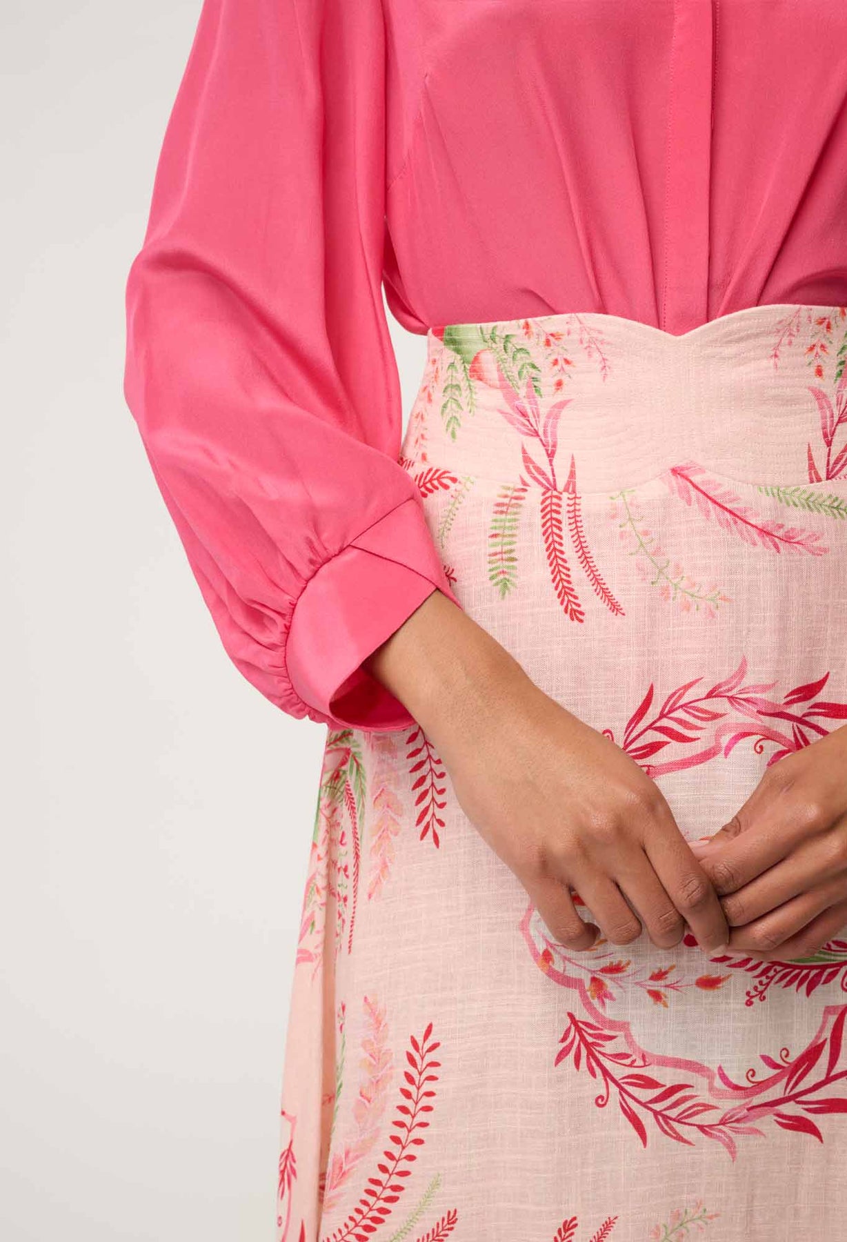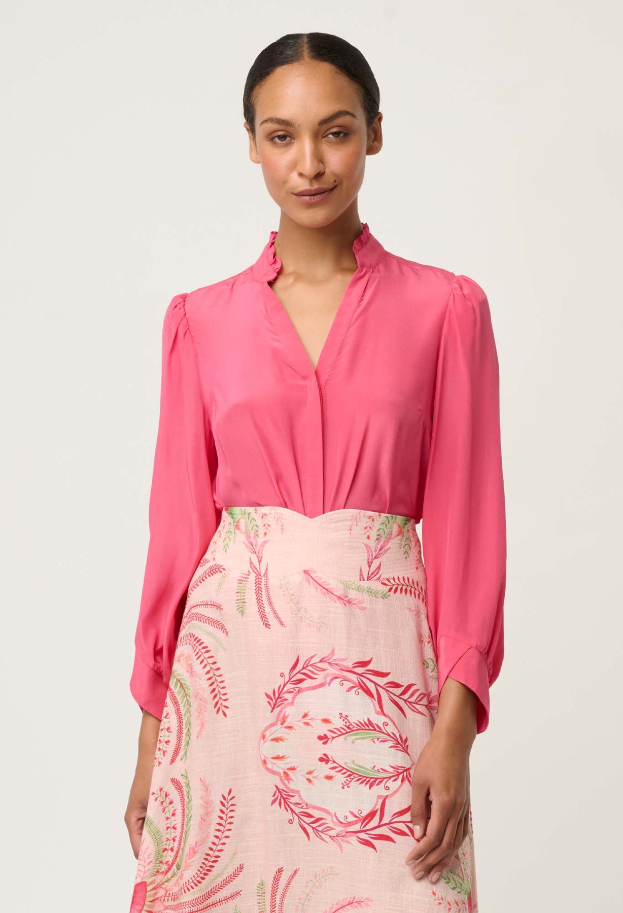 Chloe Silk Criss Cross Cuffed Shirt in Celosia Pink