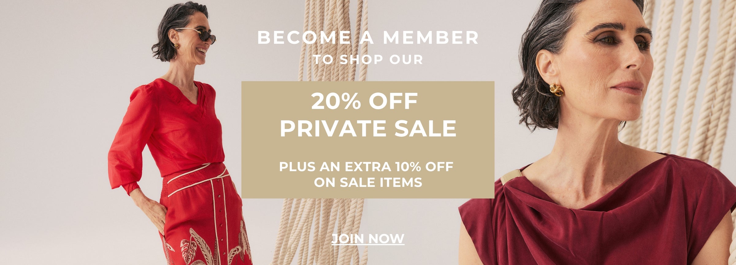 Your extra 10% discount will automatically apply at checkout when logged in as a Member (no minimum spend). This discount will not apply on full price items or Members' only Private Sale items.