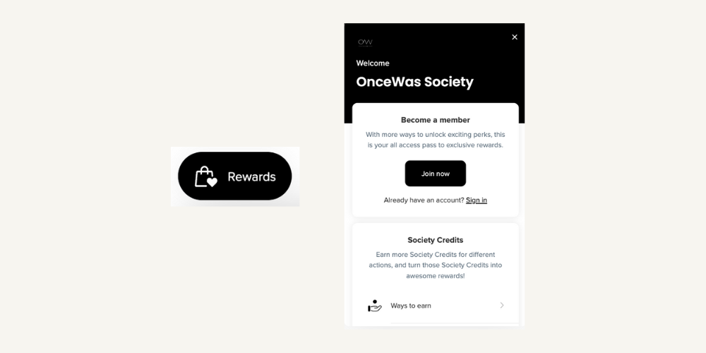 To access your existing Loyalty account, please login and click on the black "Rewards" tab at the bottom left of the page. If you have any issues accessing your existing loyalty rewards, please email hello@oncewas.com.au