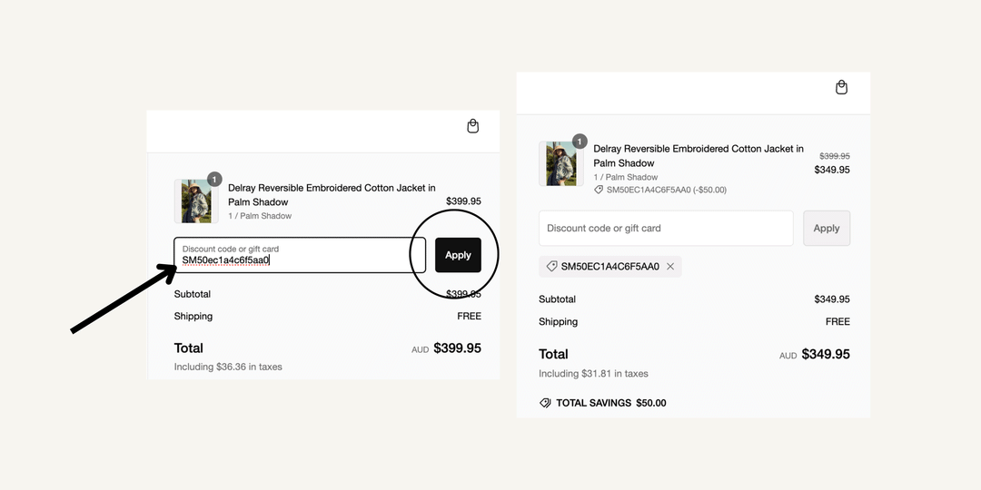 If you choose to copy and paste the code, make sure you click Apply after pasting it into the checkout screen. Please note there is a minimum spend requirement for each reward, and only one reward can be used per order. Rewards are not valid on sale items or in conjunction with any other offers or discounts.